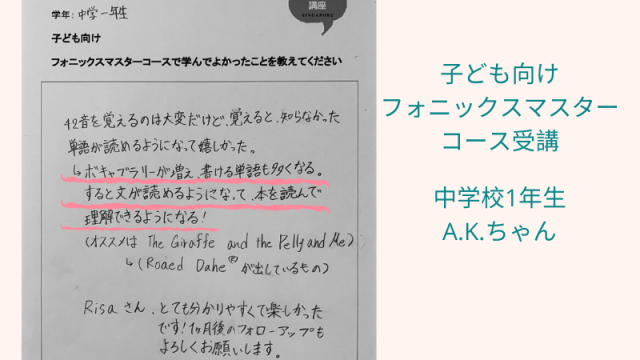 確かにフォニックスを最初に学ぶと「色々と幅が広がる」よね!素敵な表現ありがとう♡